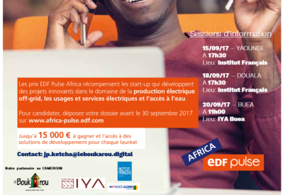 EDF lance ses prix EDF Pulse Africa - Date limite de candidature: samedi 30 septembre 2017 Le concours d’innovation d’EDF s’exporte en Afrique avec pour ambition de... Lire la suite >